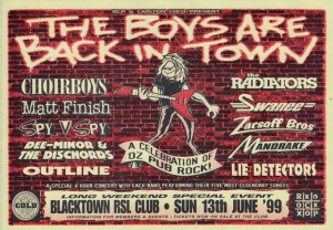 The Boys Are Back In Town Show was a concert that was the brainchild of long-time Sydney promoters, Rock Circuit Promotions (RCP), and featured some of the great pub-rock bands…